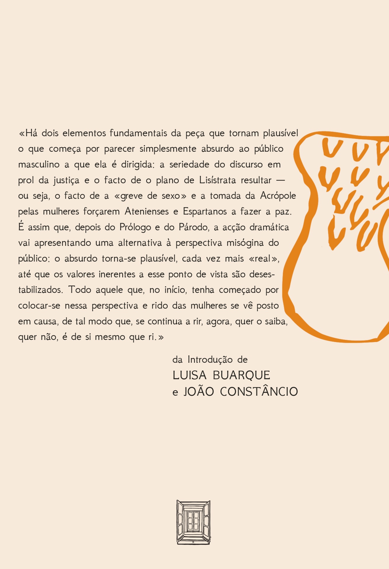 «Há dois elementos fundamentais da peça que tornam plausível o que começa por parecer simplesmente absurdo ao público masculino a que ela é dirigida: a seriedade do discurso em prol da justiça e o facto de o plano de Lisístrata resultar — ou seja, o facto de a «greve de sexo» e a tomada da Acrópole pelas mulheres forçarem Atenienses e Espartanos a fazer a paz. É assim que, depois do Prólogo e do Párodo, a acção dramática vai apresentando uma alternativa à perspectiva misógina do público: o absurdo torna-se plausível, cada vez mais «real», até que os valores inerentes a esse ponto de vista são desestabilizados. Todo aquele que, no início, tenha começado por colocar-se nessa perspectiva e rido das mulheres se vê posto em causa, de tal modo que, se continua a rir, agora, quer o saiba, quer não, é de si mesmo que ri.»
