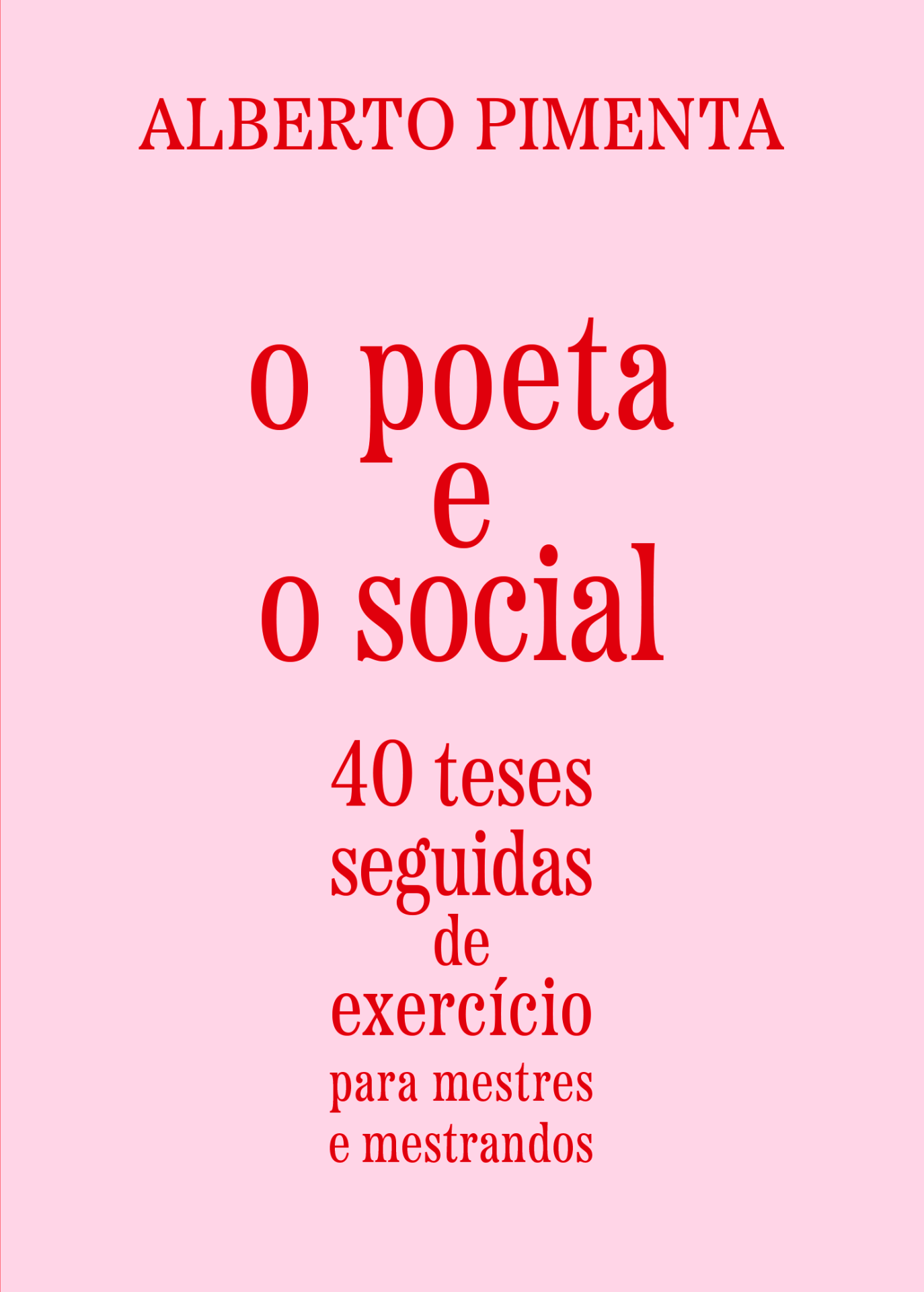 • Capa de livro rosa com texto vermelho sobre Alberto Pimenta e o título 'o poeta e o social'.