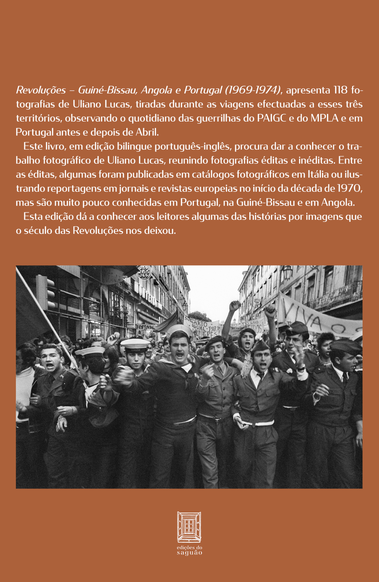 Este livro, em edição bilingue português-inglês, procura dar a conhecer o trabalho fotográfico de Uliano Lucas, reunindo fotografias éditas e inéditas. Entre as éditas, algumas foram publicadas em catálogos fotográficos em Itália ou ilustrando reportagens em jornais e revistas europeias no início da década de 1970, mas são muito pouco conhecidas em Portugal, na Guiné-Bissau e em Angola.