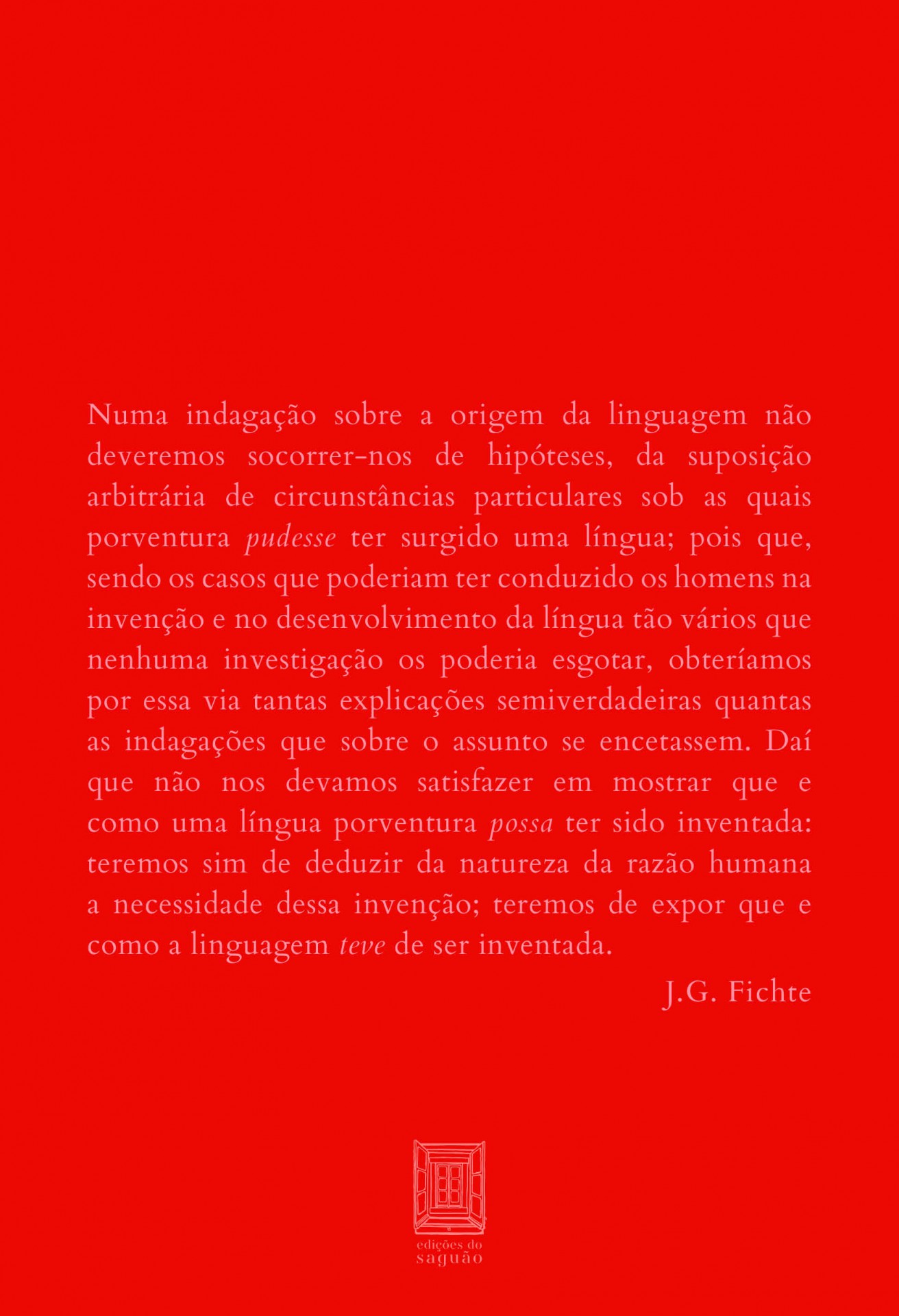 SOBRE A CAPACIDADE LINGUÍSTICA E A ORIGEM DA LINGUAGEM de Johann Gottlieb Fichte 11,70 € 13,00 € Desconto de %. IVA incluído. Partilhar Comprar Contactar Título: SOBRE A CAPACIDADE LINGUÍSTICA E A ORIGEM DA LINGUAGEM Autor: Johann Gottlieb Fichte Tradução e Posfácio: José Miranda Justo Design e Paginação: Rui Miguel Ribeiro Colecção: SagazISBN: 978-989-99944-9-2 Tiragem de 500 exemplares1ª edição, Junho de 2020108 páginas Saguão 10